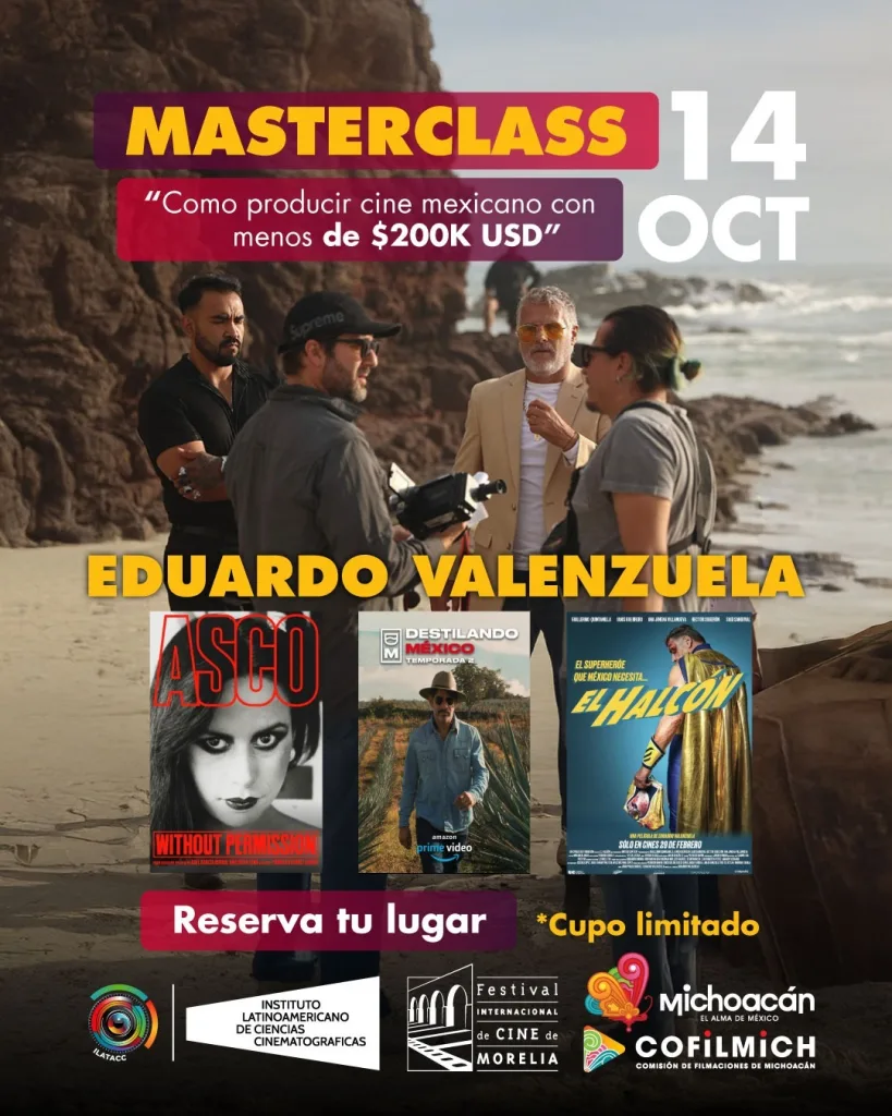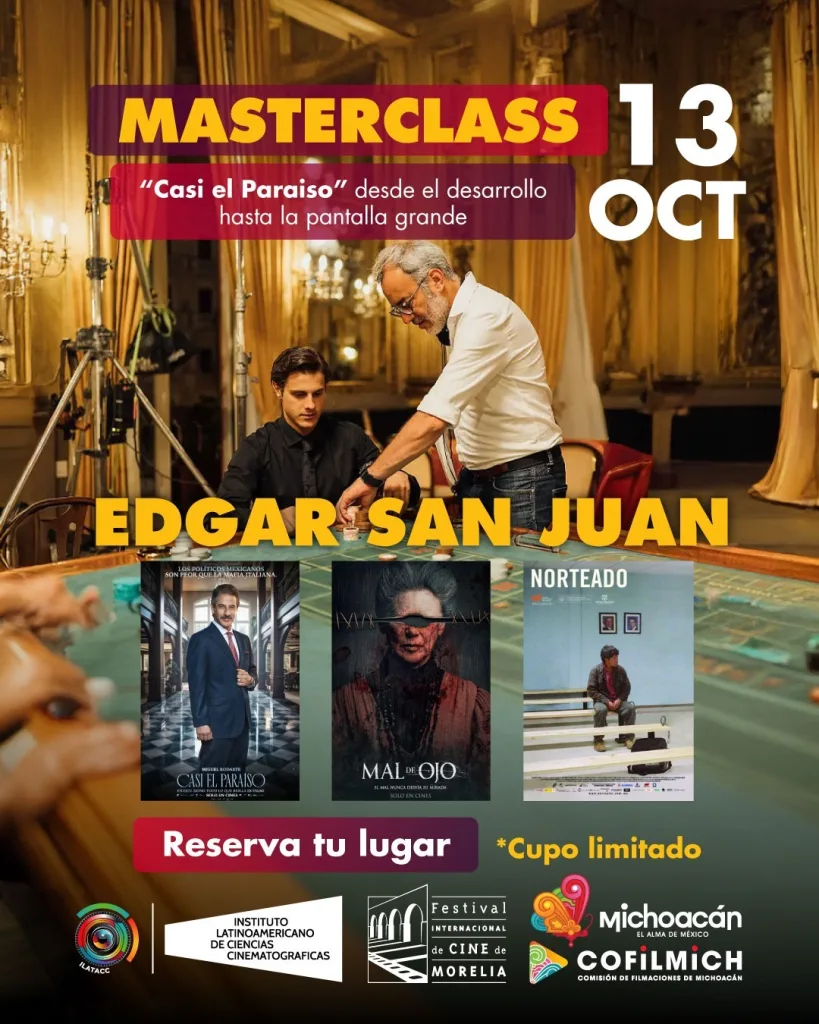 El programa de las masterclass se desarrollará de la siguiente manera: el 13 de octubre se presenta “Casi el paraíso: desde el desarrollo hasta la pantalla grande”, con Edgar San Juan; para el 14 de octubre “Cómo producir cine mexicano con menos de $200,000 USD”, de Eduardo Valenzuela.