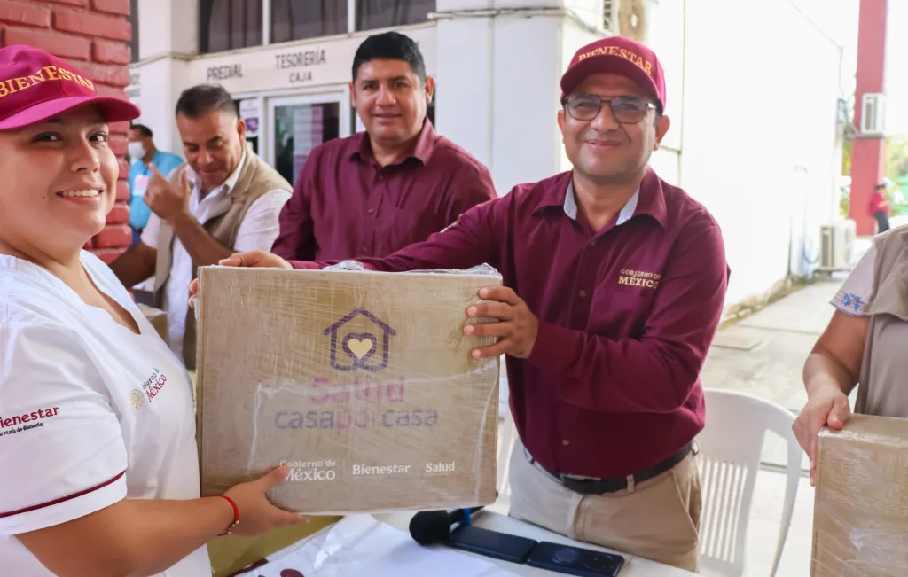 Cd. Lázaro Cárdenas, Mich.- Autoridades municipales y de la Secretaría del Bienestar realizaron la entrega del tercer y cuarto maletín con materiales e insumos del programa “Salud Casa por Casa” a Servidores de la Salud en el municipio de Lázaro Cárdenas, con el objetivo de fortalecer la atención directa a la población.