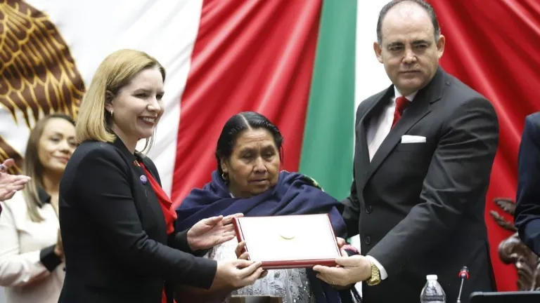 En Sesión Solemne, el Pleno del Poder Legislativo, junto con representantes de los poderes Ejecutivo y Judicial, hicieron entrega de una medalla como reconocimiento a la importante contribución de la cocinera Juana Bravo para mantener viva la comida tradicional michoacana, mientras que a Adriana Contreras, por abrirse camino en la alta dirección del futbol profesional.
