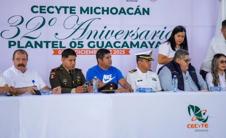 Cd. Lázaro Cárdenas, Mich.- Ante la presencia de autoridades navales, militares y municipales, así como la comunidad docente y estudiantil, este viernes se celebró el 32º aniversario del Cecyte Michoacán Plantel 05 Las Guacamayas, quienes destacaron el papel que ha tenido esta institución en la formación académica de los futuros profesionistas.