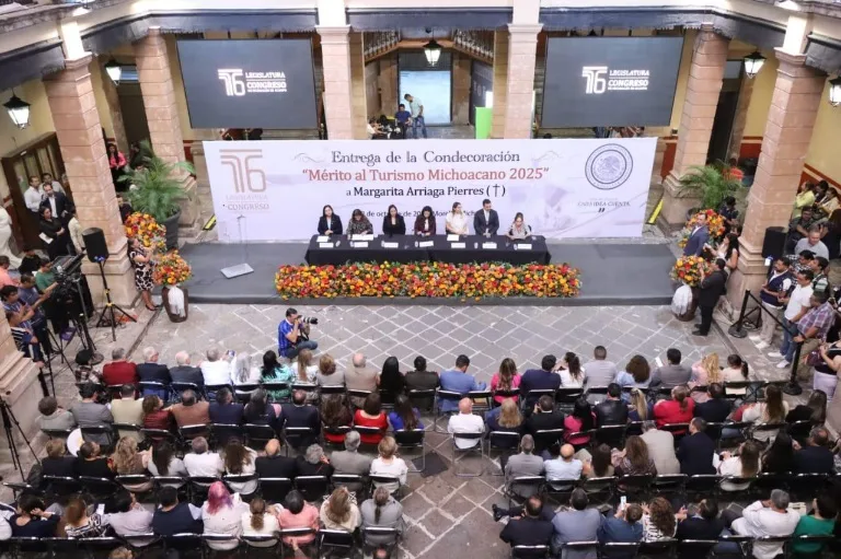 Morelia, Michoacán.- El Congreso del Estado a través de la Comisión de Turismo, entregó la Condecoración “Mérito al Turismo Michoacano 2025” a Margarita Arriaga Pierres quien, con su esfuerzo, dedicación y compromiso, contribuyó de manera significativa al desarrollo, atención y promoción de la actividad turística en el estado.