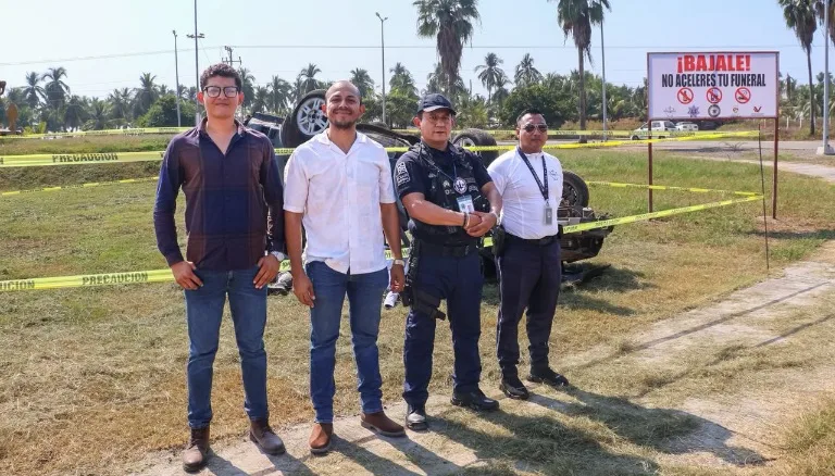 Fortaleciendo las acciones que el Gobierno Municipal a través del Presidente Municipal, Manuel Esquivel Bejarano promueve para la seguridad de los visitantes en nuestras playas durante el periodo vacacional decembrino; el Regidor Víctor Delgado puso en marcha este proyecto con la intención de concientizar a los conductores sobre evitar viajar a altas velocidades y bajos los influjos del alcohol.