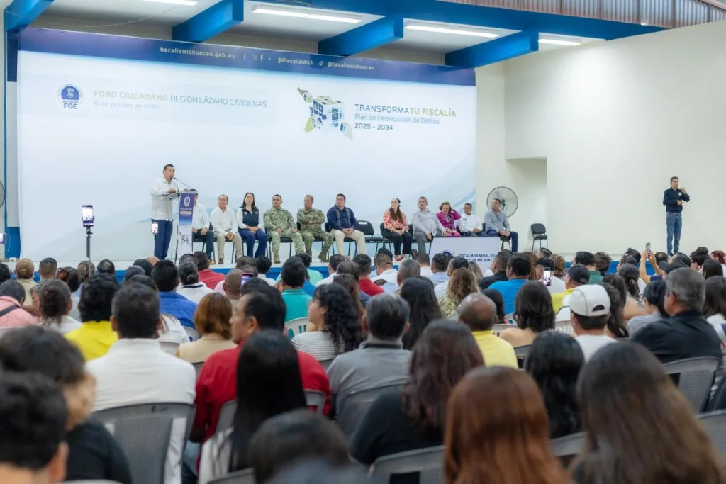 Durante su visita a Lázaro Cárdenas, el Fiscal General del Estado de Michoacán, Mtro. Carlos Torres Piña, presentó los principales avances y líneas de acción de la institución, destacando tres temas fundamentales: justicia con enfoque de género, participación ciudadana en la persecución del delito y estrategias de prevención en materia de seguridad.