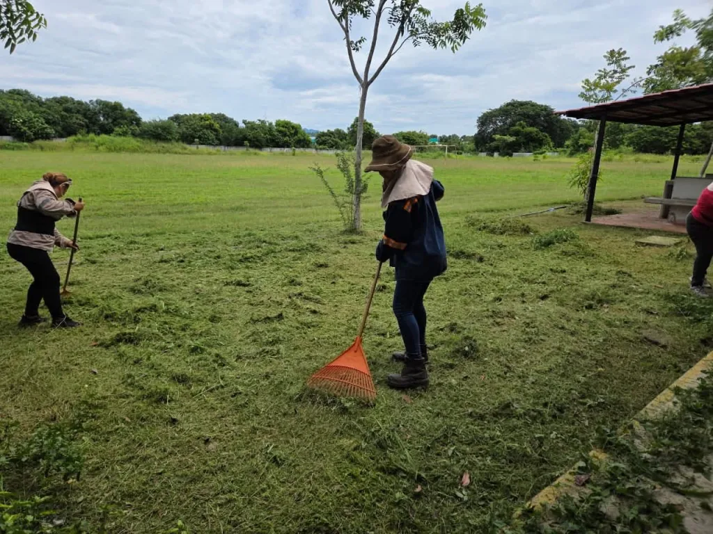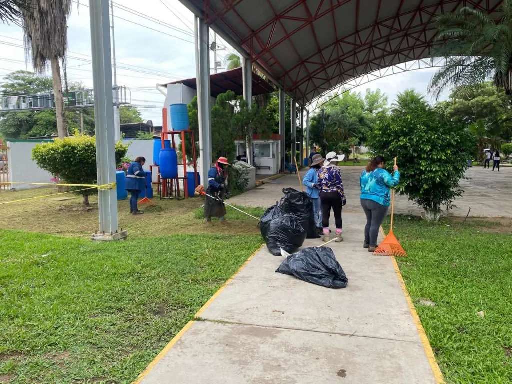 Durante la jornada, personal del H. Ayuntamiento, en coordinación con madres y padres de familia, el Departamento de Parques y Jardines y el Sindicato Único de Trabajadores del Colegio de Estudios Científicos y Tecnológicos del Estado (SUTCECYTEM), realizaron labores de desmonte en áreas deportivas y de comedores, con el propósito de garantizar espacios más seguros, limpios y funcionales para la comunidad estudiantil.
