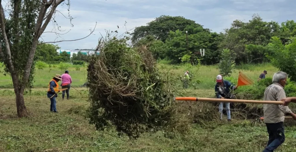 Durante la jornada, personal del H. Ayuntamiento, en coordinación con madres y padres de familia, el Departamento de Parques y Jardines y el Sindicato Único de Trabajadores del Colegio de Estudios Científicos y Tecnológicos del Estado (SUTCECYTEM), realizaron labores de desmonte en áreas deportivas y de comedores, con el propósito de garantizar espacios más seguros, limpios y funcionales para la comunidad estudiantil.