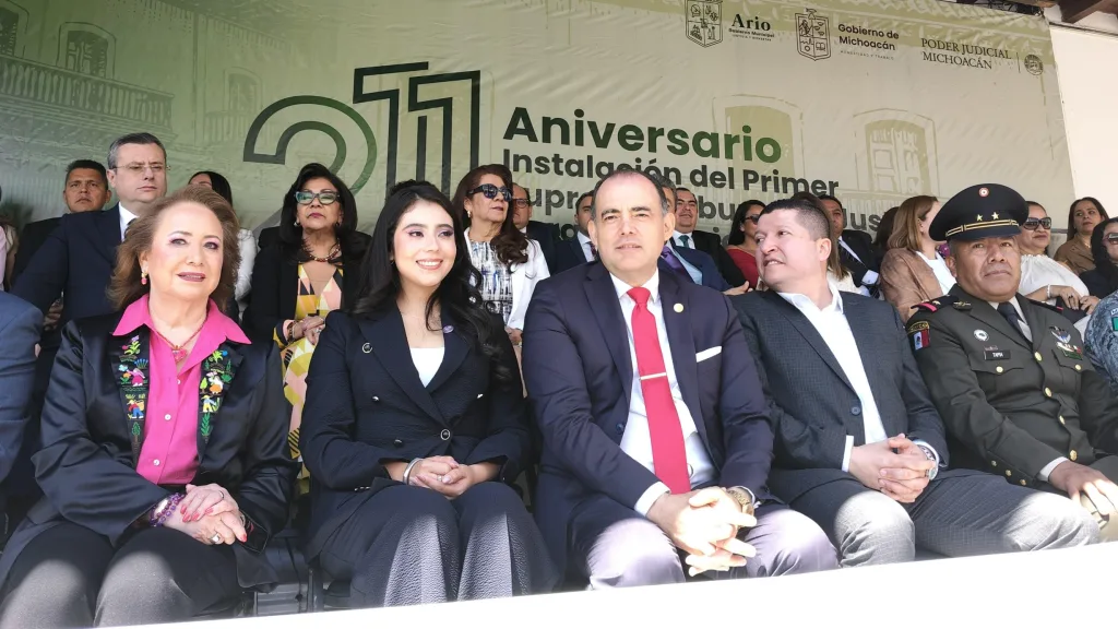 En el evento participaron la ministra Yasmín Esquivel Mossa, en representación de la Suprema Corte de Justicia de la Nación; el secretario de Gobierno del Estado, Raúl Zepeda Villaseñor; el magistrado Hugo Gama Coria, presidente del Poder Judicial de Michoacán; la presidenta municipal de Ario, Karla Yohana Mendoza Bermúdez; el fiscal general del Estado, Carlos Torres Piña; así como el diputado Vicente Gómez Núñez, quienes coincidieron en destacar la importancia histórica de este acontecimiento para la consolidación del Estado de derecho en México.