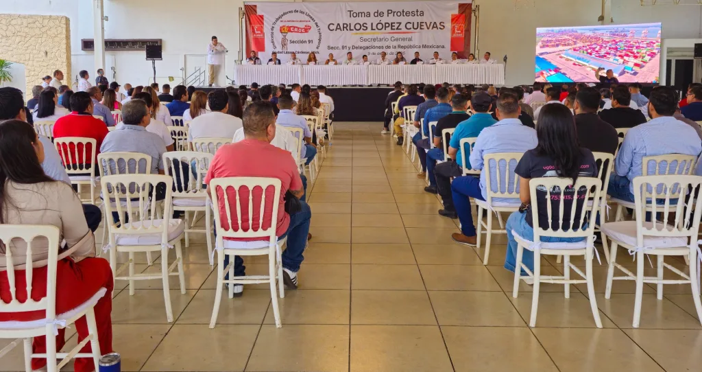 En su mensaje, el Alcalde felicitó a Carlos López Cuevas por su formación y trabajo en esta organización, y que hoy se reconoce con este importante cargo que sin duda va a posicionar nacionalmente a Lázaro Cárdenas, como a la base trabajadora; por lo que externó su apoyo para que este sector siga creciendo a beneficio del desarrollo de todos los michoacanos y los lazarocardenenses.