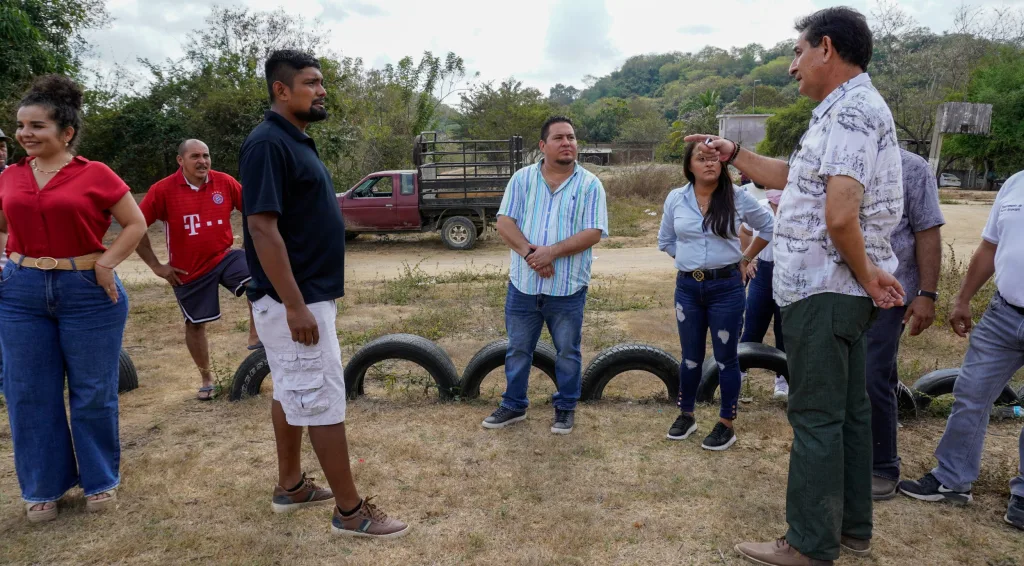 Cd. Lázaro Cárdenas, Mich.- Durante su visita a la comunidad de El Reino, el Presidente Municipal, Manuel Esquivel Bejarano hizo entrega de vales de materiales para la remodelación y mejora del campo de futbol de la comunidad, obra que será impulsada de manera conjunta con los habitantes, quienes aportarán la mano de obra.