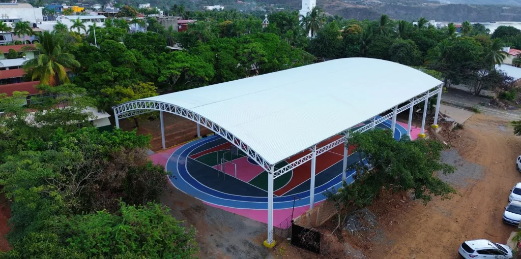 Cd. Lázaro Cárdenas, Mich.- Haciendo cumplimiento a uno de los compromisos más importantes con la comunidad escolar, para mejora de la infraestructura; este lunes el Presidente Municipal, Manuel Esquivel Bejarano, hizo entrega de la techumbre de la cancha de usos múltiples de la Escuela Primaria “Reivindicación Petrolera” de la tenencia Caleta de Campos, obra que fue promovida con el programa federal Fondo 33 Ramo III.