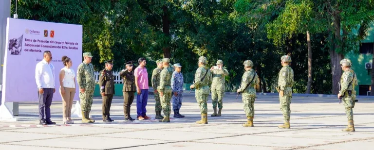 Cd. Lázaro Cardenas, Mich.- En un acto protocolario en las instalaciones del 82º Batallón de Infantería; este lunes el General Brigadier D.E.M. José Luis Bucio Quiroz, Comandante de la Cuadragésima Tercera Zona Naval Militar tomó protesta al Coronel de Infantería D.E.M. Margarito Méndez Gijon como nuevo Comandante del 82º Batallón de Infantería.