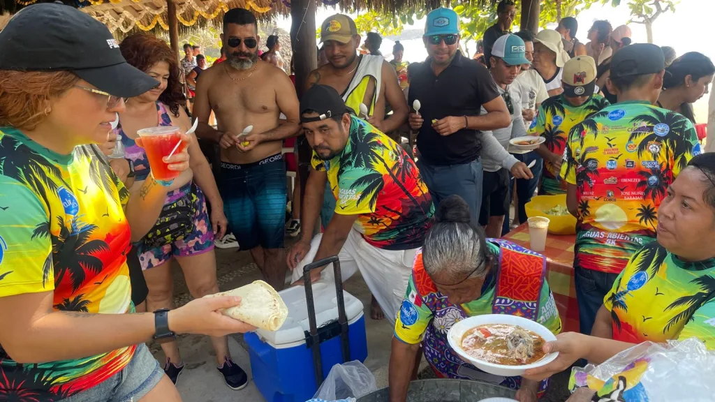 El evento contó con la presencia de autoridades y referentes del deporte y la comunidad, entre ellos Ebenezer Verdia, Secretario del H. Ayuntamiento de Aquila; el Comisariado de Santa María de Ostula, comunidad nahua a la que pertenece Palma Sola; los anfitriones Javier y Juan Carlos Domínguez, de Cabañas Palma Sola; Federico Pérez, del Club IMSS Tintoreras; y Samantha Núñez, jueza estatal de aguas abiertas en Michoacán.