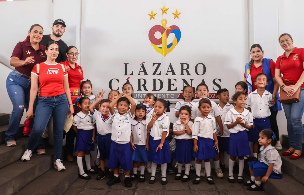 Cd. Lázaro Cárdenas, Mich.- Con sonrisas, entusiasmo y mucha curiosidad, alumnos del Preescolar Gaby Brimmer realizaron una visita a las instalaciones del H. Ayuntamiento de Lázaro Cárdenas, como parte del programa de recorridos que impulsa el Departamento de Turismo Municipal.