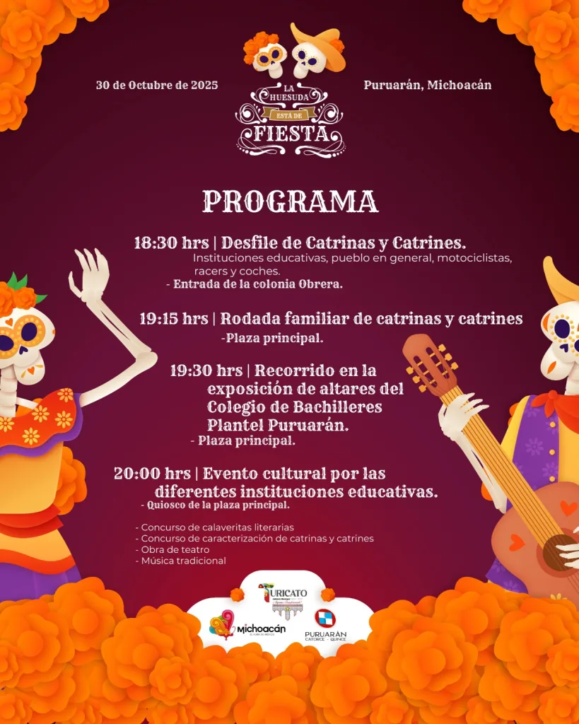 Del 31 de octubre al 2 de noviembre, las y los asistentes a esta tenencia perteneciente al municipio de Turicato podrán disfrutar de la gastronomía local. El Centro Histórico de Puruarán albergará 17 locales comerciales que estarán disponibles durante los tres días del evento.