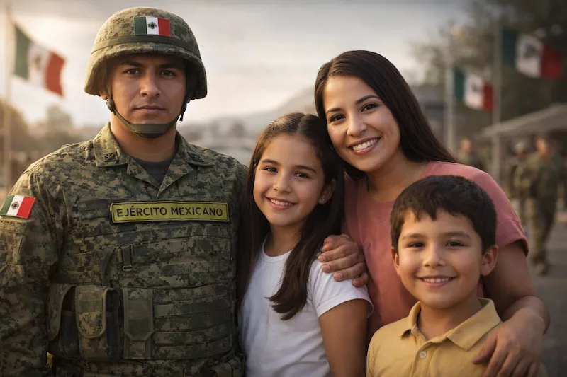 Asimismo, se brinda alimentación completa diaria, becas escolares para hijos, créditos personales e hipotecarios, además de cursos y capacitaciones tanto en México como en el extranjero, con la posibilidad de ascender dentro del Sistema Educativo Militar.