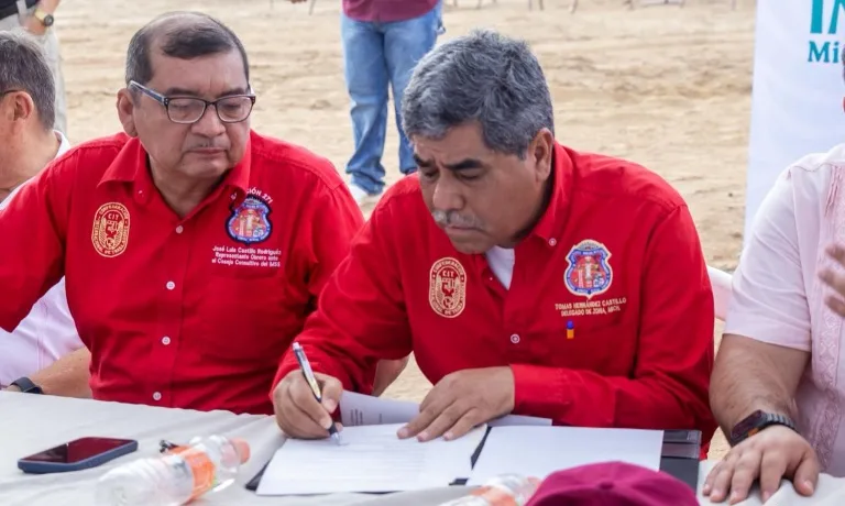 Rafael López Hernández, representante Obrero de la CTM; Tomás Hernández Castillo, Delegado de la zona por el Estado de Michoacán, sindicato minero 271, 272, 273. 274, 336 y 337; Jesús Armando Velázquez Morales, Delegado Especial Sección 271 del Sindicato Minero; Ing. David Salas Muñoz, Presidente de la CMIC de Lázaro Cárdenas; Julio César Cortez Velázquez, Presidente del Consejo Coordinador Empresarial de Lázaro Cárdenas; Luis Fernando González Chávez, Presidente Coparmex en Lázaro Cárdenas; Melesio Orozco Cisneros, presidente de la CTM en Lázaro Cárdenas; Aaron Campos Alvarado de la CANACO Lázaro Cárdenas Canaco.
