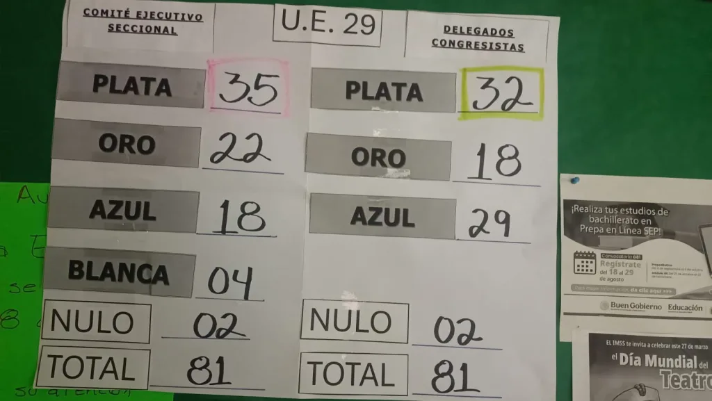 Cuatro planillas presentaron sus propuestas, Oro, Azul, Blanco y Plata, y fue esta última la que lleva una significativa ventaja en un conteo preliminar en cada una de las fuentes laborales distribuidas en el territorio estatal.