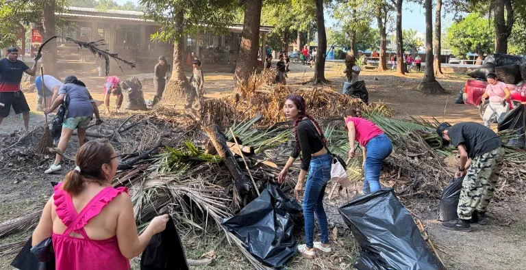 Personal de Parques y Jardines realizó trabajos de poda estética, chaponeo, limpieza de áreas verdes y retiro de basura en distintos espacios del plantel. A estas labores se sumaron docentes y padres de familia, quienes participaron activamente en el saneamiento de áreas comunes.