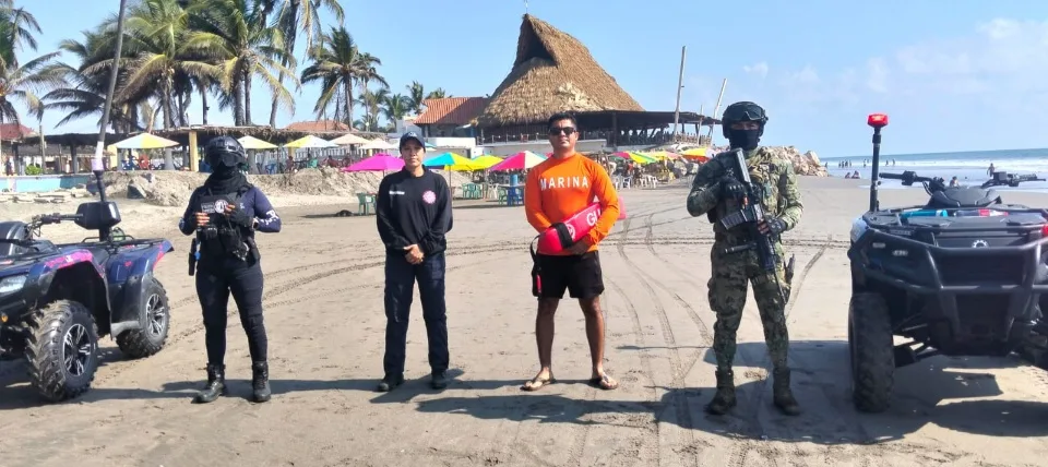 El despliegue interinstitucional continúa activo con la presencia conjunta de elementos de diferentes corporaciones, quienes mantienen vigilancia permanente para evitar incidentes durante la temporada vacacional.